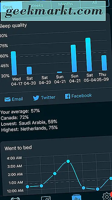 เช่นเดียวกับวัฏจักรการนอนแอปพลิเคชันนี้ใช้งานได้ดีที่สุดในระยะยาวเมื่อคุณเริ่มปรับตัวให้เข้ากับสภาพแวดล้อมและเริ่มเห็นแนวโน้มหรือรูปแบบในนิสัยการนอนของคุณ แอปพลิเคชันจะติดตามการนอนหลับของคุณและช่วยให้คุณรู้ว่าคุณนอนหลับได้ดีเพียงใดและเหตุผลที่คุณอาจนอนไม่หลับได้เป็นอย่างดี การดูข้อมูลเช่นนี้จะช่วยให้คุณทำการเปลี่ยนแปลงที่จำเป็นเพื่อให้แน่ใจว่าการนอนหลับของคุณดีขึ้น