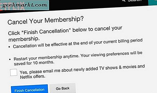 เมื่อยกเลิกการเป็นสมาชิกแล้วคุณจะไม่สามารถเข้าถึงแอปได้ตามที่คุณทำ Netflix จะเก็บประวัติการค้นหาข้อเสนอแนะและการให้คะแนนและคิวดีวีดีไว้เป็นเวลาสิบเดือนหลังจากการยกเลิกของคุณดังนั้นหากคุณต้องการสมัครรับข้อมูลอีกครั้งในภายหลังคุณสามารถเลือกตำแหน่งที่คุณต้องการได้ในภายหลัง