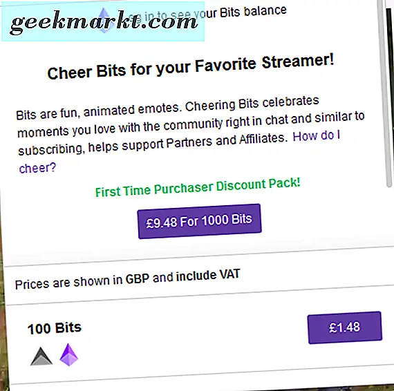 ซื้อบิตประมาณ 1 บิตต่อ 1c เมื่อคุณ Cheer streamer การทำธุรกรรมจะไม่สามารถย้อนกลับได้ ลำแสงจะได้รับ Bits ตามที่ได้รับบริจาค แต่ต้องสะสมมูลค่า 100 ดอลลาร์เพื่อถอนตัว กลุ่มผู้เริ่มต้นใช้งานหรือผู้ที่ยังคงทำงานต่อไปนี้จะต้องรอสักครู่ก่อนรับเงิน จะไม่ต้องรอนานนัก Twitch ยังใช้ตัดระหว่าง 25-30% เพื่อช่วยในการทำงานกับค่าใช้จ่าย