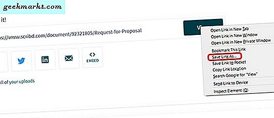 ตอนนี้ให้จับ URL ที่เราบันทึกไว้ก่อนหน้านี้ในขั้นตอนนี้และวางลงในแถบที่อยู่ด้านบนของเว็บเบราเซอร์ของคุณ ปุ่มดาวน์โหลดควรจะโหลดลงในอุปกรณ์ของคุณและคุณจะสามารถบันทึกเอกสาร Scribd ลงในคอมพิวเตอร์ของคุณได้ อย่างไรก็ตามเราควรกล่าวด้วยว่าเนื่องจากการอัปเดตล่าสุดจาก Scribd ทำให้เรามีปัญหาในการดำเนินการนี้โดยไม่ต้องแก้ไขโค้ด HTML ก่อนโดยใช้ปุ่มการตรวจสอบในเบราเซอร์ของคุณ ไม่ใช่โซลูชันที่สมบูรณ์แบบ แต่เมื่อคุณแก้ไข HTML สำหรับปุ่มดูเพื่อนำไปสู่อุปกรณ์ของคุณคุณสามารถดาวน์โหลดหน้าเว็บ HTML ซึ่งจะช่วยให้คุณสามารถใช้เอกสารแบบออฟไลน์ได้ หากคุณมีสิทธิ์เข้าถึง Adobe Acrobat Pro (ตรวจสอบกับโรงเรียนหรือครูของคุณ) คุณสามารถแปลงเอกสาร HTML เป็น PDF ได้