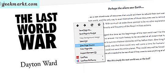 เริ่มต้นด้วยการนำทาง Firefox (เราไม่สามารถแนะนำให้ใช้ Chrome เนื่องจาก Chrome จะสร้างไฟล์. swf ที่ไม่สามารถดาวน์โหลดได้) ไปยังเอกสาร Scribd ที่คุณต้องการบันทึกลงในคอมพิวเตอร์ของคุณ แม้ว่า Scribd จะมีนวนิยายเต็มรูปแบบและงานอื่น ๆ ของนวนิยายเราขอแนะนำให้ใช้เฉพาะเอกสารสารคดีและแหล่งข้อมูลอื่น ๆ สำหรับโครงการเอกสารและงานวิจัยของคุณเท่านั้น ในตัวอย่างเอกสารให้คลิกขวาที่เอกสารและเลือก "ดูแหล่งที่มาของหน้าเว็บ" จากเมนู ซึ่งจะเป็นการเปิดแท็บใหม่ในเบราว์เซอร์โดยแสดงข้อมูลต้นฉบับสำหรับเป้าหมาย Scribd ของคุณ