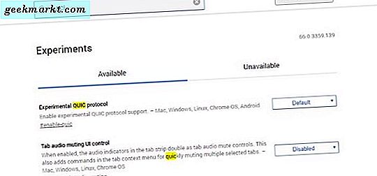 - ค้นหาหรือค้นหา "โปรโตคอล QUIC ทดลอง"