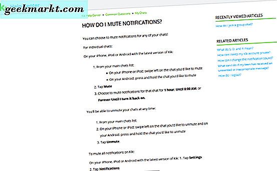 ปิดเสียงใน Kik เป็นวิธีที่สุภาพในการวางข้อความหรือข้อความทั้งหมดสำหรับผู้ที่ถูกระงับ พวกเขายังสามารถจัดส่งและยังสามารถอ่านได้ แต่การแจ้งเตือนจะถูกระงับ การปิดเสียงมีประโยชน์สำหรับเวลาที่คุณกำลังรับสายหรือไม่ว่างทำอย่างอื่นและไม่ต้องการปิดกิกลงอย่างสมบูรณ์ นอกจากนี้ยังมีประโยชน์สำหรับการปิดคนที่น่ารำคาญที่ส่งข้อความถึงคุณตลอดเวลาหรือเพื่อให้ได้ความสงบและเงียบสงบเป็นเวลาหนึ่งชั่วโมง